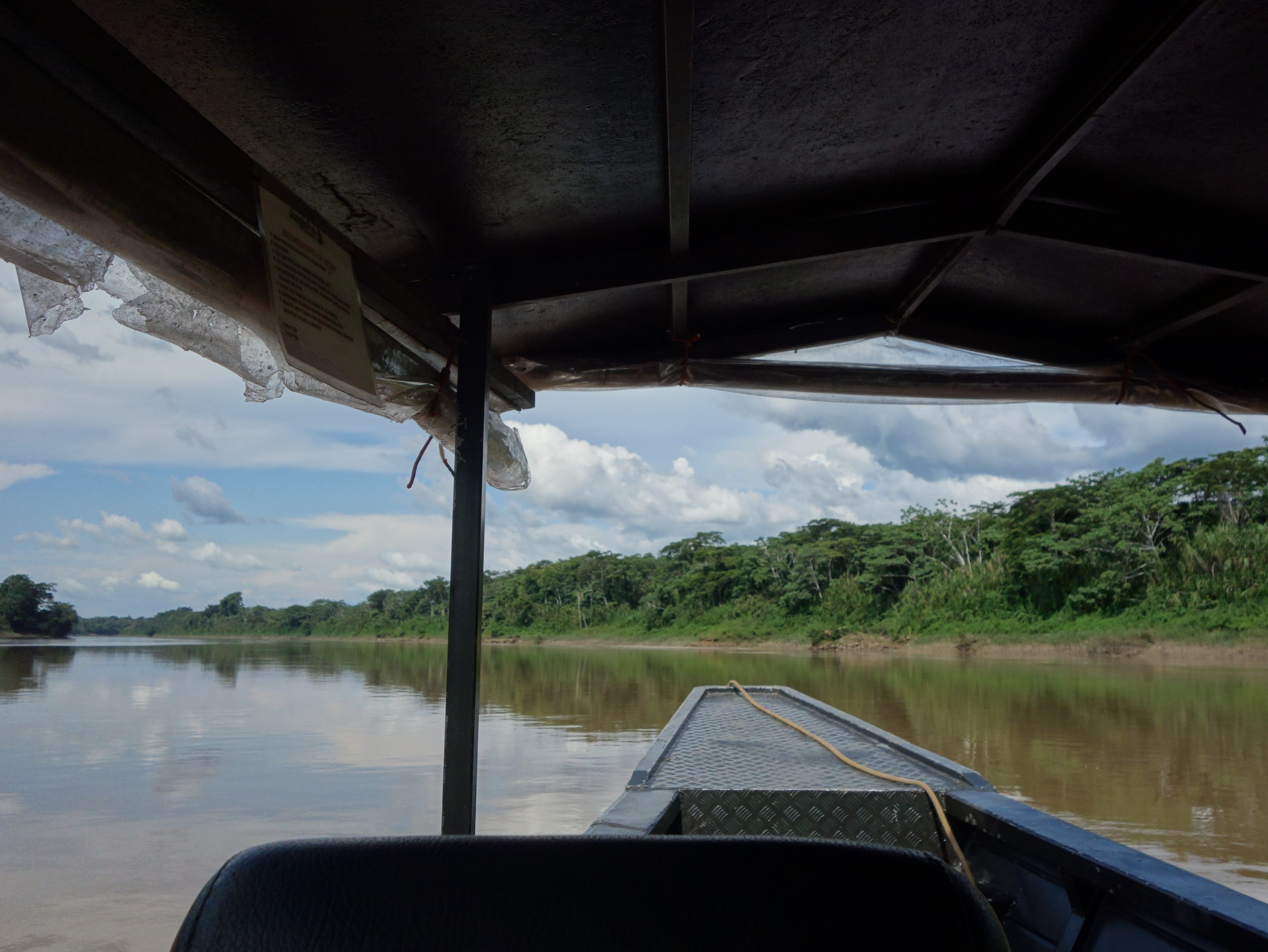 You’re greeted at the airport by Carlos, the driver from JunglePro who has come to take you to the office where you will complete payment and then board a boat to travel down the Tambopata River for two and a half hours until you reach the lodge. Before you leave, though, Carlos lets you know he has to go to the main market in Puerto Maldonado to get some more food for the lodge. He (somewhat jokingly) asks if you want to go along. You accept. He lets you know that people may stare at you because you are a gringa and you look different from the majority of people who live here. You wave it off and say it’s fine, you’re excited to go, and you climb aboard a combo mototaxi/rickshaw/truck. The breeze feels amazing, as the heat is already suffocating your northern Kentucky lungs, and you see a bit of the town, chatting with Carlos on the way. You secure the food, then it’s back to the office to board the boat.