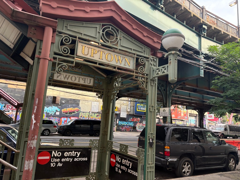 Some people start at the 215th Street subway station, but I’m a bit neurotic and wanted to go up as far north as I could, so I walked up around 220th Street, took my starting photo by the Broadway Bridge that connects Manhattan to the Bronx, started my watch, and was off. My journey began in the northernmost neighborhood Manhattan: Inwood. Given my lack of Manhattan knowledge, it somewhat surprised me to pass by several gas stations. Though it was early, I saw several people out and about, starting their Saturday early by talking with and buying from street vendors or pushing their carts to the grocery. It was the morning after the Fourth, so I suspect many people were also still asleep after a late night.