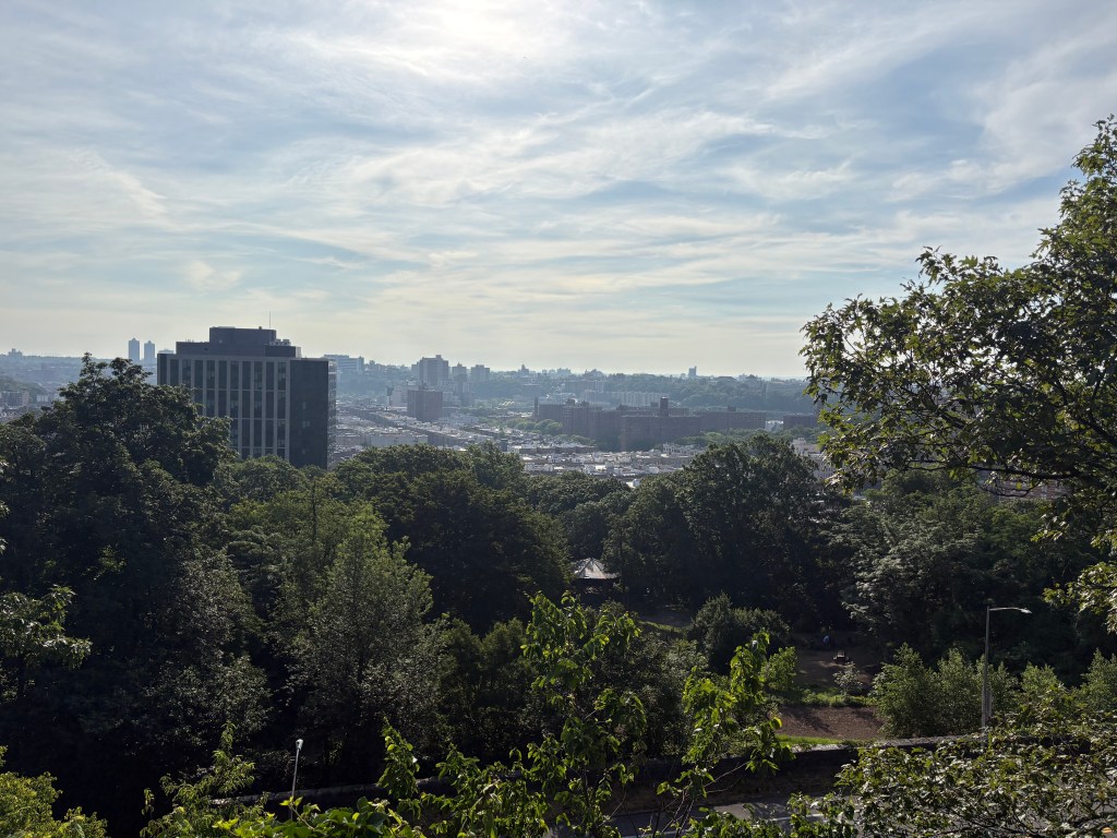 From my starting point, I journeyed to my first stop: The Met Cloisters in Fort Tryon Park. Operated by the Metropolitan Museum of Art, the Met Cloisters is a museum built from parts of French abbeys that were disassembled, shipped to the U.S., and reassembled brick-by-brick. Today, the museum is dedicated to Medieval art, and it sits atop a hill that I heard had some great views. So, even though the museum would be closed when I got there, I set off to climb the hills, passing joggers and other early-morning walkers to reach the top of the Cloisters.